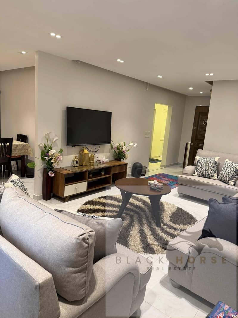 Furnished apartment with hotel furniture at the cheapest price for rent in Al Rehab Compound, New Cairo