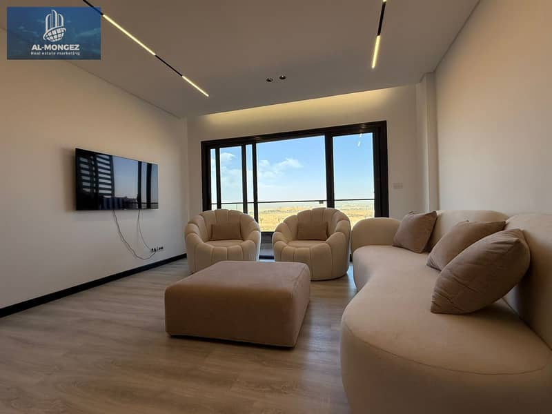 A brand-new, first-use apartment with modern furniture and special high-quality finishing, located in one of the best areas of Madinaty, close to all services and main attractions.