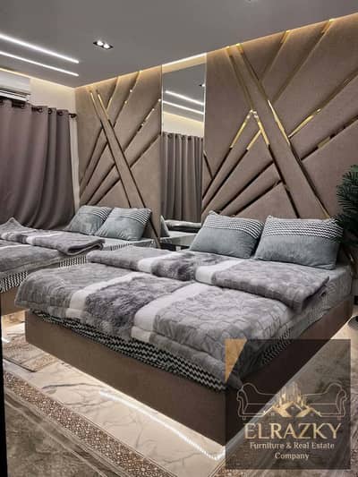 Furnished studio apartment for rent in Nasr City, between Abbas El Akkad and Makram Ebeid streets, near City Stars. Large bedroom with two beds, fully air-conditioned. Large reception area with air conditioning and a large TV. Fully equipped kitchen. Super deluxe bathroom. Internet access. Nasr City, first of Makram Ebeid, near Abbas El Akkad For families