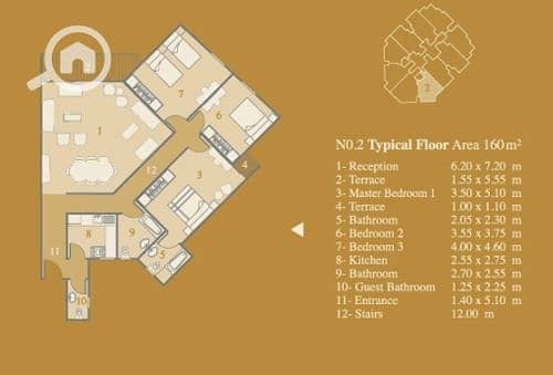 An apartment with an area of 160m consisting of 3 bedrooms, 3 bathrooms, and a reception area with 3 pieces - fully finished - the apartment is ready for immediate occupancy.