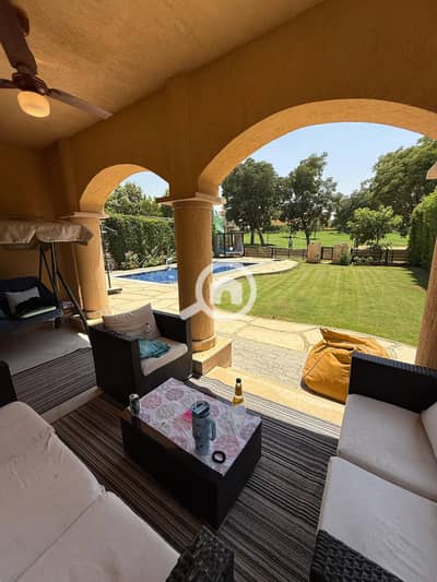 Furnished villa for rent in Madinaty, Model (F), ultra super luxe finishing, hotel-style furnishings with a swimming pool.