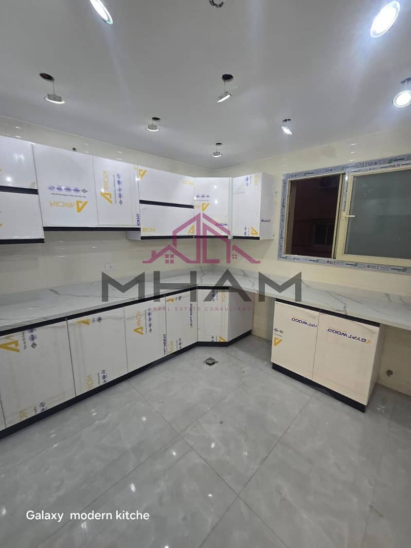 - 3 bedrooms and 3 bathrooms, a large kitchen, and a reception with four units, and two living units, and two large balconies and a small balcony
