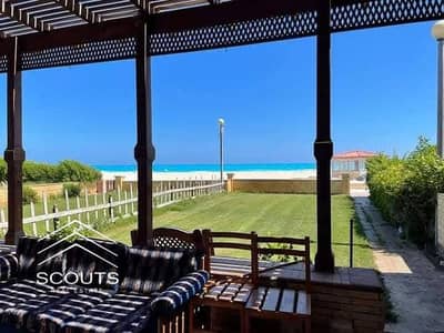 Chalet for sale, 224 sqm with a private garden, direct lagoon view, and complete Ultra Lux finishing in Mazarin, New Alamein. 3 bedrooms, prime location, suitable for living or investment.