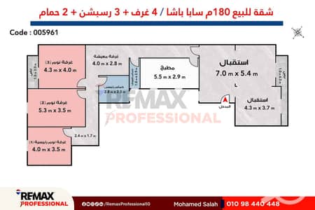 Apartment for sale 180 m Saba Basha (steps from the Russian Embassy) - 6,300,000 EGP cash - Agent: Mohamed Salah
