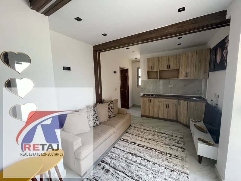 Fully furnished rooftop studio apartment for rent in Stone Residence Compound, Fifth Settlement.
