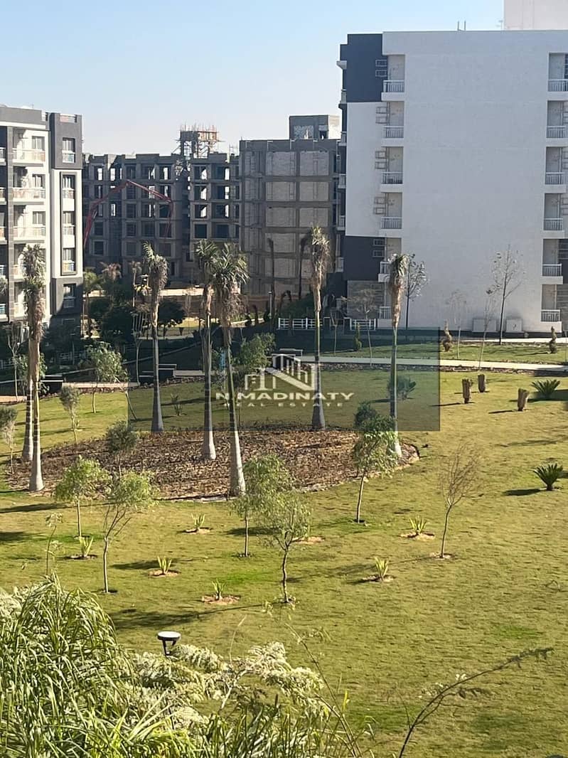 Opportunity available in Madinaty, on a wide garden, with a clear sea view. Apartment 116 meters in B12, the best location in Madinaty, completely un