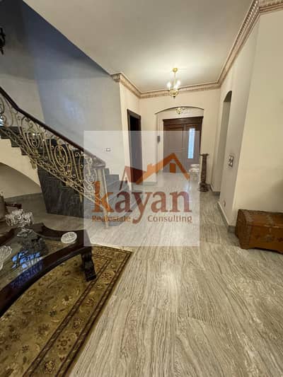 A fully furnished, detached villa with a private garden is for sale in Tayba Compound, Fifth Settlement.