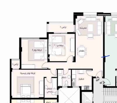 Layout: 3 bedrooms + 2 bathrooms (one master) + reception + kitchen + 2 terraces