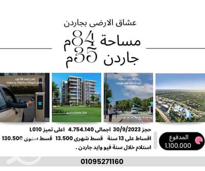 84m + 35m ground floor in Garden City of Noor, delivery within a year, old reservation.