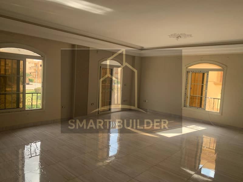 Residential apartment for rent in Al-Banfsaj, Villas of the First Settlement, with ultra-super-lux finishing, second floor, clear garden view, apartment area 220 square meters, close to main roads and axes.