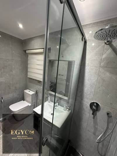 The apartment is located in the Golden Square area of New Cairo, near Hyde Park and Galleria Moon Valley.