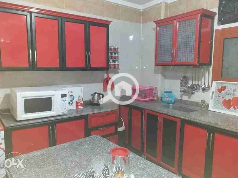 In Old Maadi, an apartment for rent, furnished, on a side street in a new building, third floor, clean furnishings. The apartment consists of three bedrooms, a living room, a kitchen, and a bathroom. Natural gas available, there is air conditioning in the living room. For families or girls only, asking price is 12,000.