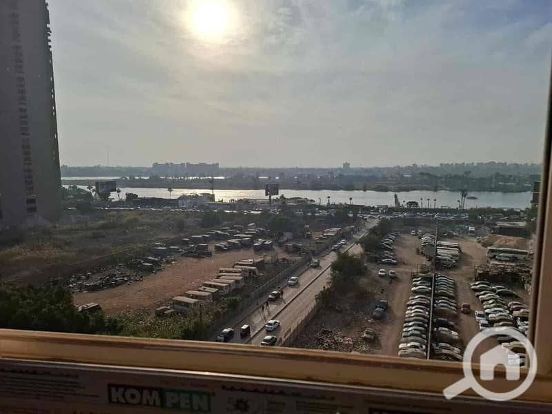 شقة مفروش للايجار فيو النيل كورنيش المعادي صف اول مكونه من 3غرف وريسبشن ومطبخ و2حمام مكيفة بالكامل تكييفات سبليت واي فاي شبابيك شتر الكتروني فرش مودرن جدا اسانسير برج ومدخل شيك