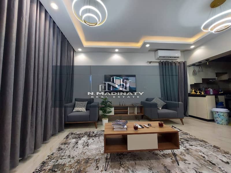 Furnished apartment for rent in Madinaty, 100 sq m, in building B15, third floor, first occupancy, high-end finishing, modern furnishings, sea view, very close to services. A great deal for quick rent. Prime location.