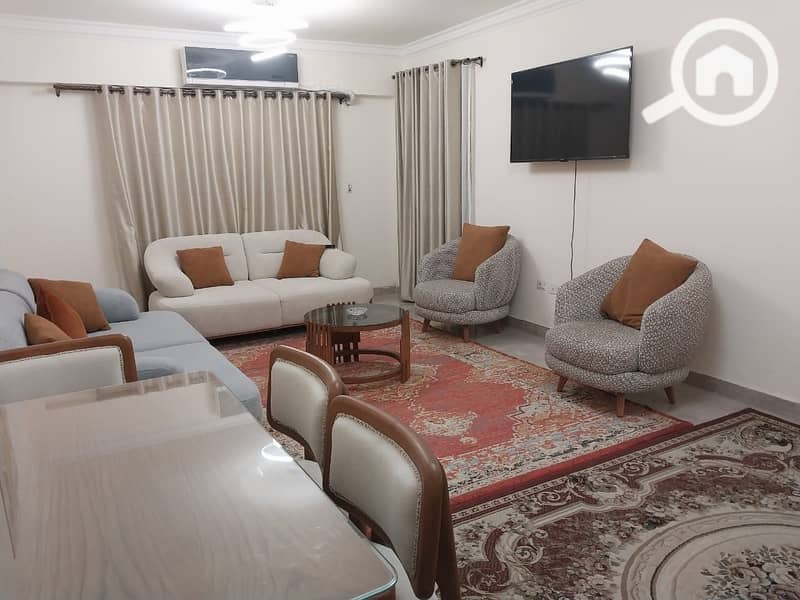 A fully furnished apartment for rent in Janna Zayed 2 Compound, offering a comfortable and upscale living experience.