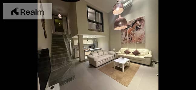 A bright double-height duplex in Tawila, featuring floor-to-ceiling glass and open water views.