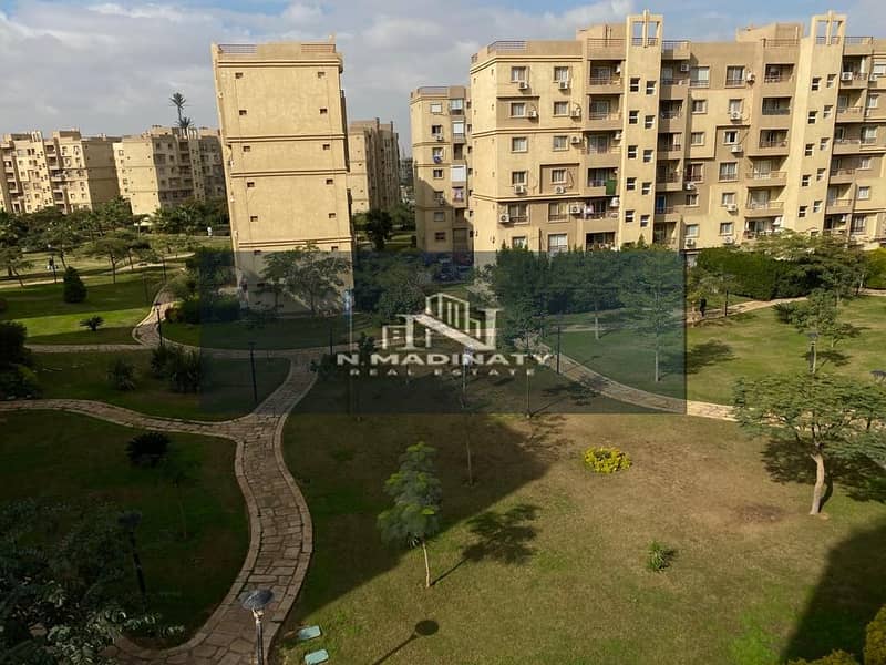For rent in Madinaty (new law) Apartment 143 sq m in B6, overlooking a wide garden and facing the sea Excellent location, steps away from services a