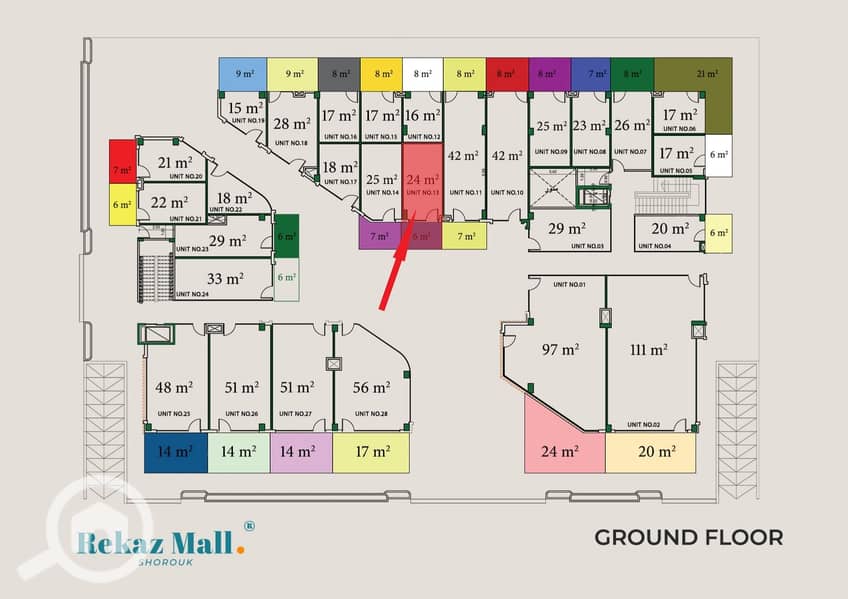 Shop for sale, 24m², directly facing the mall, with a discount and installments over 8 years.