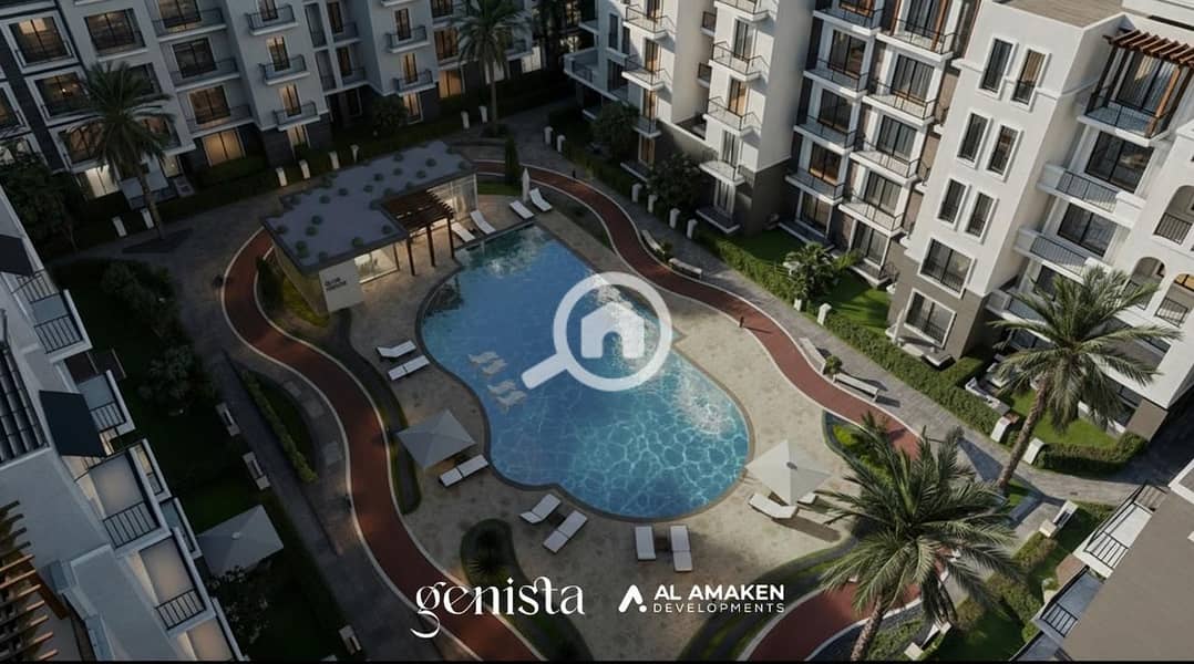 Genista Compound is a high-end residential project in Sheikh Zayed developed by Al Amaken Development. It features modern European-inspired designs and offers a variety of residential units. The compound enjoys a strategic location close to major roads such as 26th of July Corridor and El Dabaa Axis, providing a luxurious, secure living environment with vast green spaces and integrated services, focusing on high construction and finishing quality.