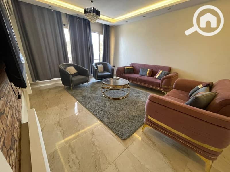 For rent, a fully furnished apartment in Janna 1 Compound – Sheikh Zayed, with a total area of 130 sqm, located on the fifth floor with an elevator. The apartment features an excellent layout and high-quality finishes, making it ideal for families or individuals looking for a ready-to-move-in, comfortable home in a prime location within the compound.