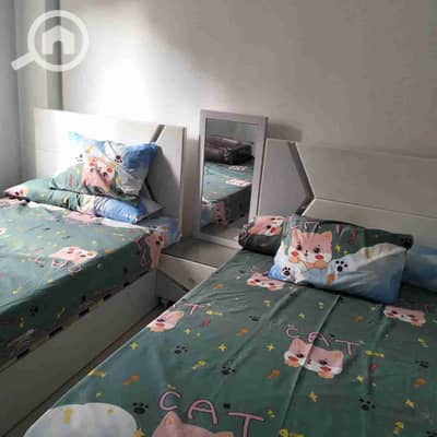 Furnished apartment for rent in Future Towers, Sheikh Zayed, first floor, two bedrooms, a bathroom, and a kitchen, 4 beds, 2 air conditioners, 55-inch screen, living room, automatic washing machine. Families or engineers required for a long-term lease only, as per the owner's preference.
