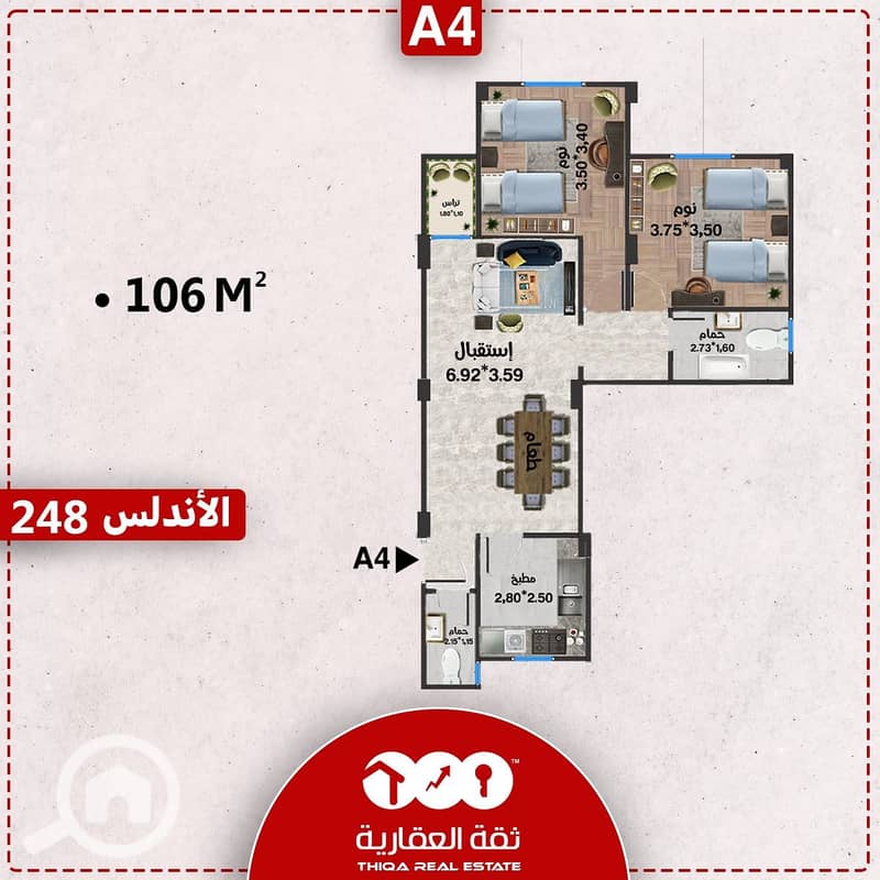 Apartment for sale, 106 m², within 9 months in Andalus 2,