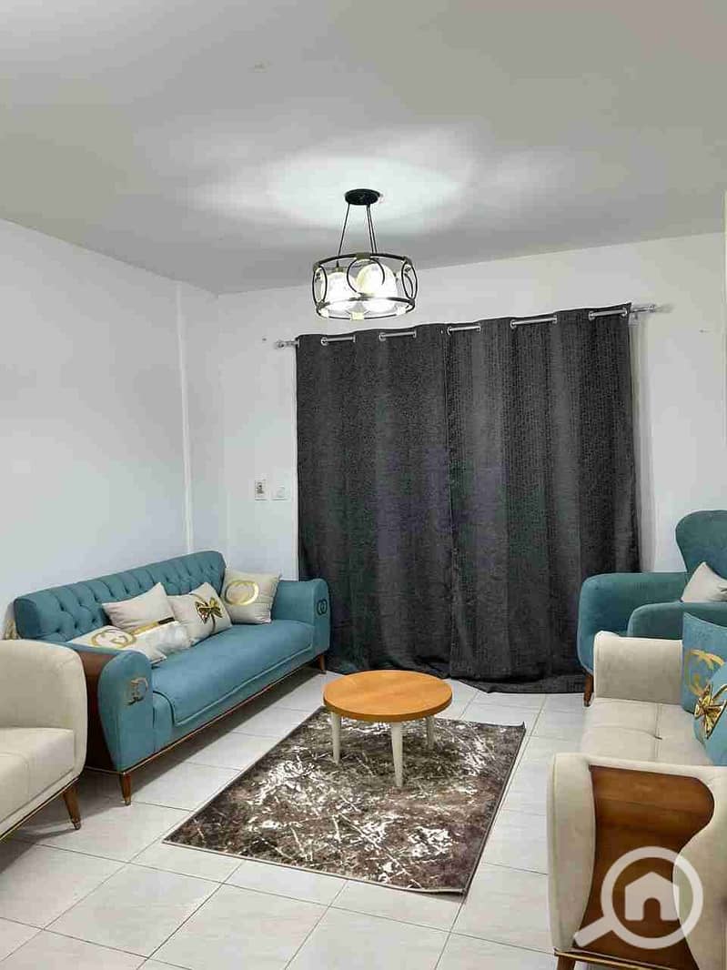 A fully furnished apartment for rent in Madinaty B6, prime location near all services and South Park, with a lovely garden view.