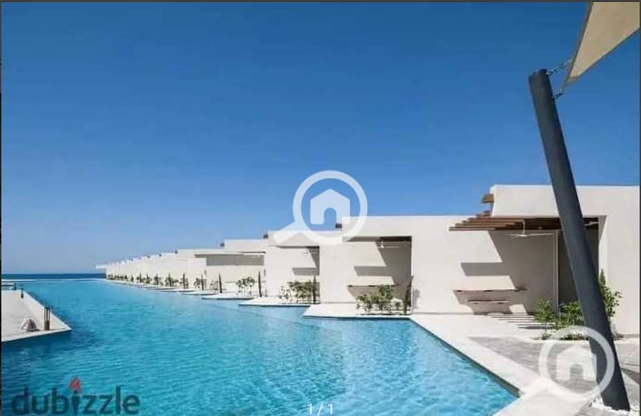 For a quick sale: a chalet for half price, immediate handover, fully finished including kitchen and air conditioning, directly facing the sea in the '