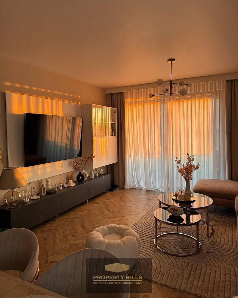 For sale, a 121 square meter apartment in Golden Square, Fifth Settlement – immediate delivery, ultra super lux finished with air conditioning, panoramic view and wonderful landscape, prime location, a once-in-a-lifetime opportunity for luxurious living.