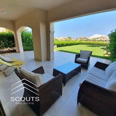Immediate receipt of a fully finished chalet directly by the sea with a double view for sale in Ain Sokhna, 3 rooms, ground floor with garden.