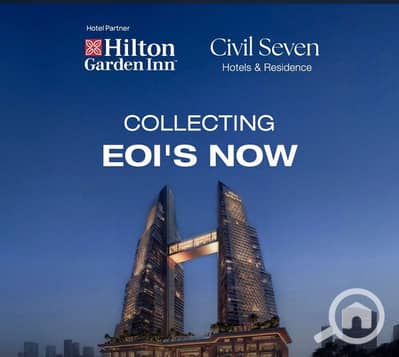 Hotel room for sale, managed by Hilton, prime location near the museum and pyramids, installments over 15 years.