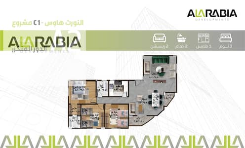 Apartment 176 meters,1305000 down payment and installments over 40 months, corner of Panorama View, main street, North House, Beit Al Watan