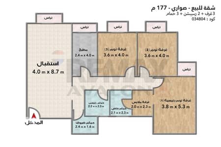 شقة للبيع 177 م (صوارى) - 6,500,000 ج ( مقدم + اوفر ) - الوكيل / هبه محمود