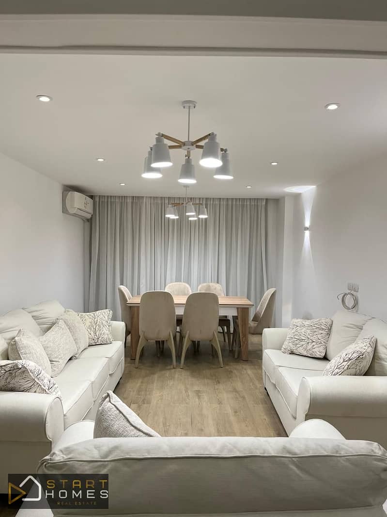 For rent in Al Rehab City, Phase 5, in a prime location. A distinguished location combining services and tranquility, next to the services area. Steps away from Abu Bakr Al Siddiq Mosque, Othman Ibn Affan School, and Al Rehab Club. High-end finishes. First occupancy. Apartment area: 132 square meters. Consists of 3 bedrooms and 2 bathrooms. Special price: 56,000 EGP.