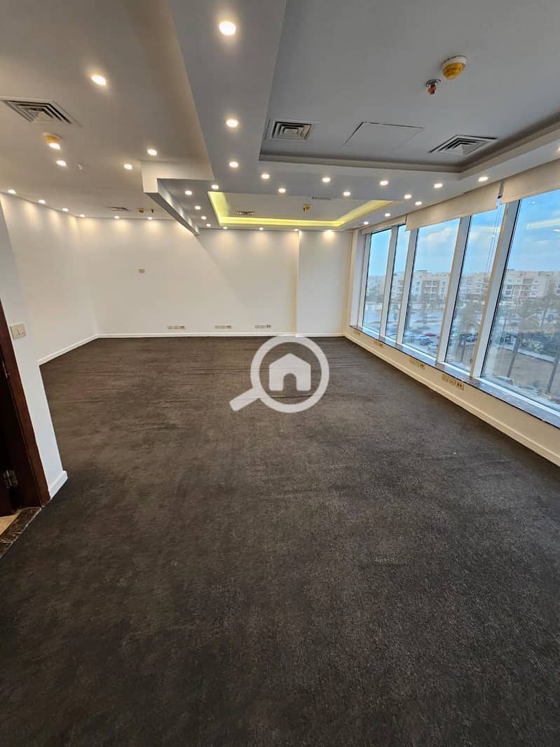 Office space of 150 m in Panorama for rent in the best administrative building in the Fifth Settlement on North 90th Street – a prime location in the best spot in New Cairo – ready for immediate delivery