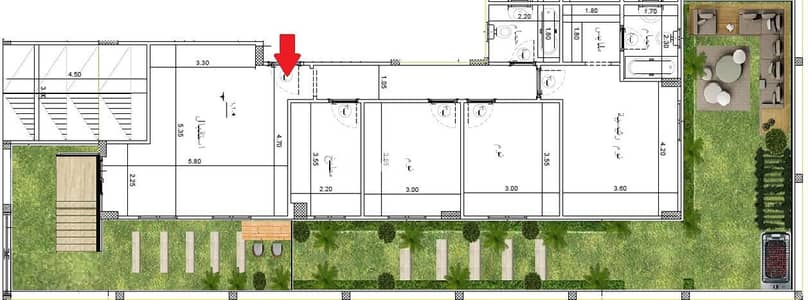- Apartment 140m on the ground floor with a garden, facing a corner passage with an open view on a 32m separating street