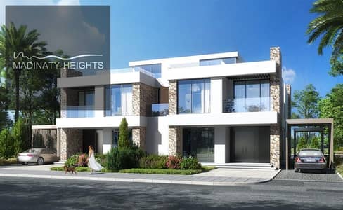 Villa for sale in installments in New Noor City Q1, with a very special location overlooking a square and a garden, with a built area of 195 square meters and land area of 205 square meters.
