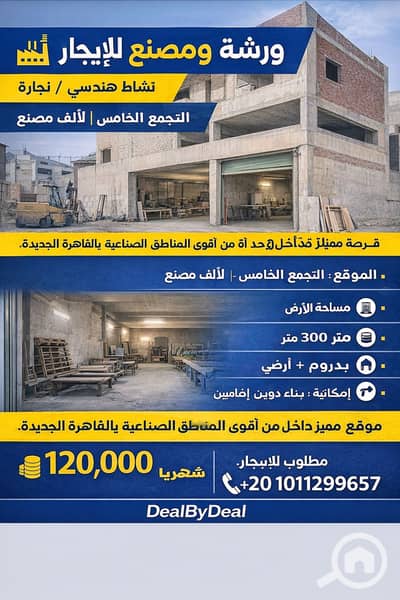 Factory for rent in Al-Alf Factories, Fifth Settlement, area 300 meters, basement and ground floor