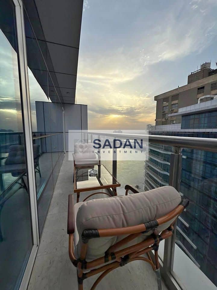 Hotel apartment directly on the Nile, fully furnished and equipped with air conditioning and a kitchen, ready for viewing with a 30% cash discount.
