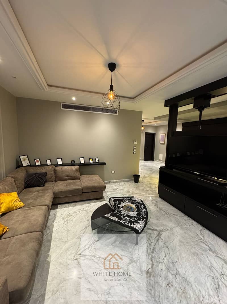 Furnished modern apartment for rent in Lake View Compound, ground floor with garden