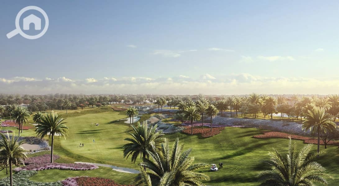 An exceptional villa for sale in Levana, Uptown Cairo, with a prime location directly on the first row of the golf course.