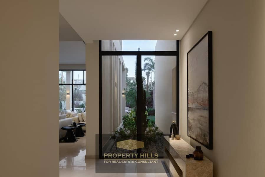 Independent villa for resale, ready for immediate delivery, fully finished with a view of the golf course next to ريحانة and جاردينيا بارك.