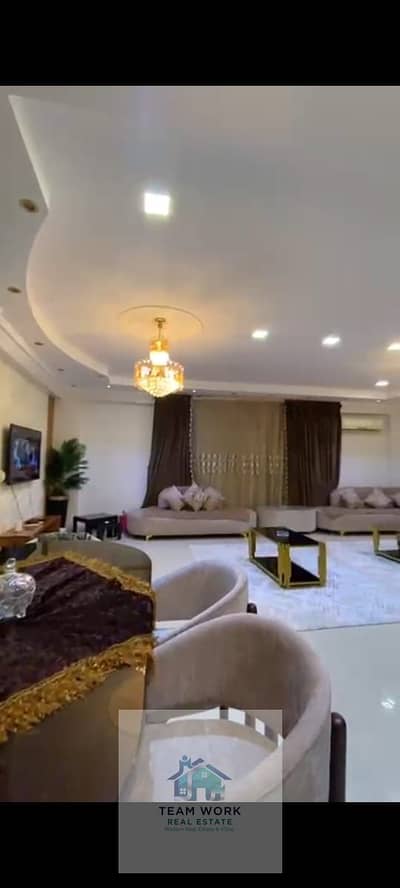 For those who appreciate distinction, a fully furnished duplex is available for rent with hotel-style furnishings. The 240-square-meter apartment features a reception area, kitchen, bathroom, and a private entrance leading to a 120-square-meter garden on the first floor. The second floor comprises three bedrooms and two bathrooms.