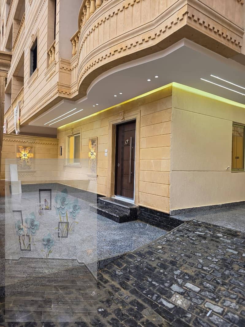 The most beautiful ground villa with a private entrance, 245 square meters, at the first gate.