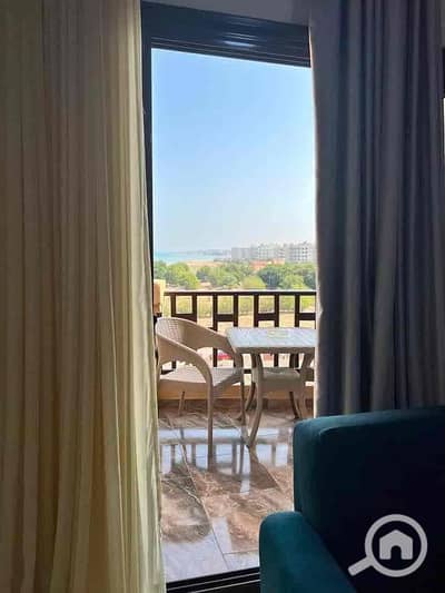 شقة مفروشة من غرفتي نوم مع إطلالة جانبية على البحر في منتجع تورتلز بيتش، الأحياء، الغردقة. استمتع بالشاطئ الرملي الخاص والتصميم المناسب للعائلات والمشي الهادئ على شاطئ البحر.