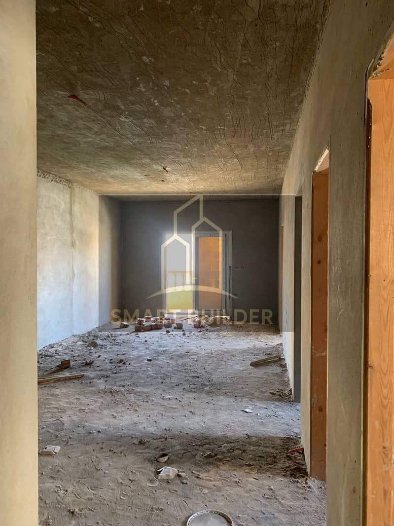 Apartment for sale at a bargain price in Al-Qarnfal villas, First Settlement, semi-finished, immediate delivery, 200 m area, repeated floor, northern facade, street view, steps from Al-Rihab and Dar Misr Al-Qarnfal.