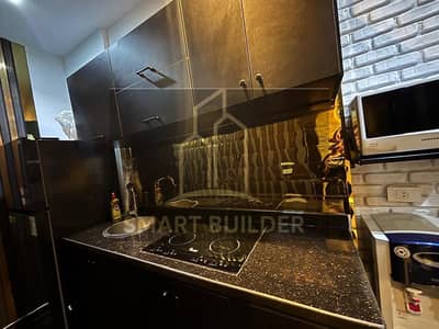 Basement studio for sale in Al-Bunfsaj, Al-Tajammu' Al-Awwal, with ultra super lux finishing, furnished with appliances and air conditioning, and a kitchen with a smart system. Excellent location.