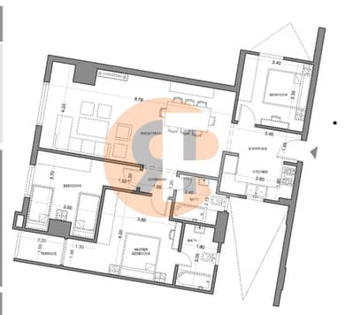 Unit Layout: (2-piece reception - 3 bedrooms - 2 bathrooms - terrace - kitchen)