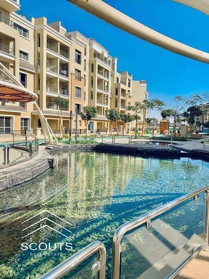 own an apartment for sale with a garden view, in the Fifth Settlement, Sarai Compound, next to Madinaty, installments over 12 years
