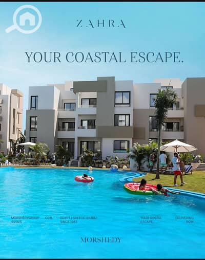 A hot opportunity: a fully finished high-lux 2-bedroom chalet for immediate sale in the most prestigious and distinctive resort in Sidi Abdel Rahman, Zahra, next to Hacienda Bay (sur X sur).